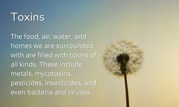 The food, air, water, and homes we are surrounded with are filled with all kinds of toxins. These include metals, mycotoxins from mold, pesticides, insecticides, and even bacteria and viruses.